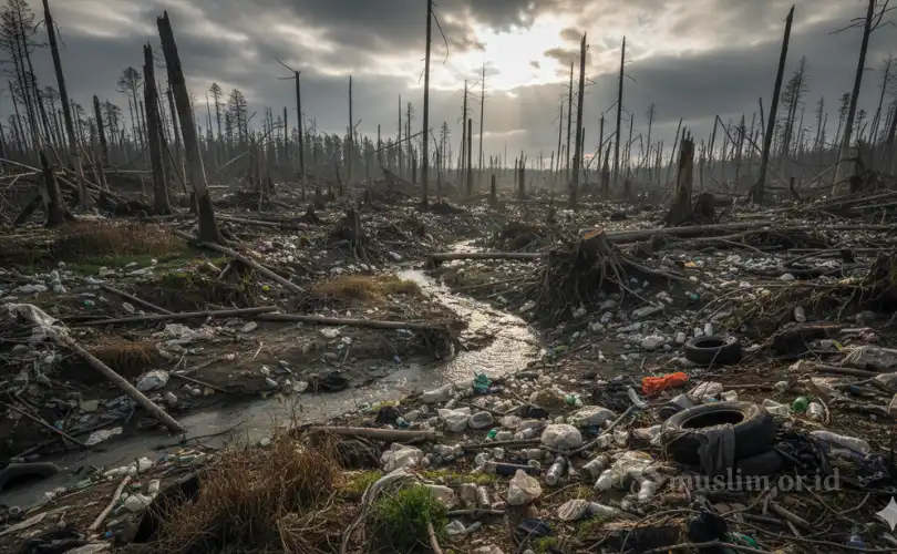 “Telah tampak kerusakan di darat dan di laut disebabkan oleh perbuatan tangan manusia; agar Allah merasakan kepada mereka sebagian dari akibat perbuatan mereka, supaya mereka kembali (ke jalan yang benar).” (QS. ar-Rūm: 41)